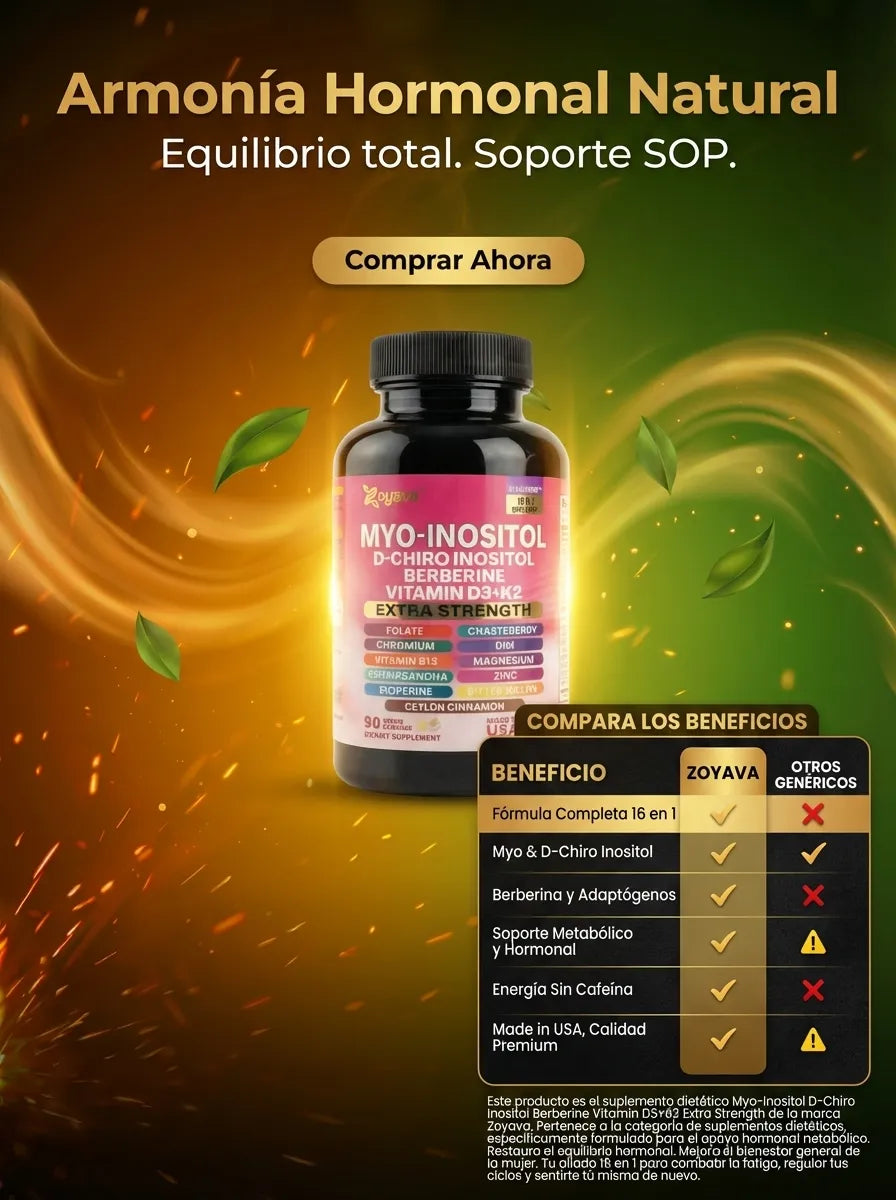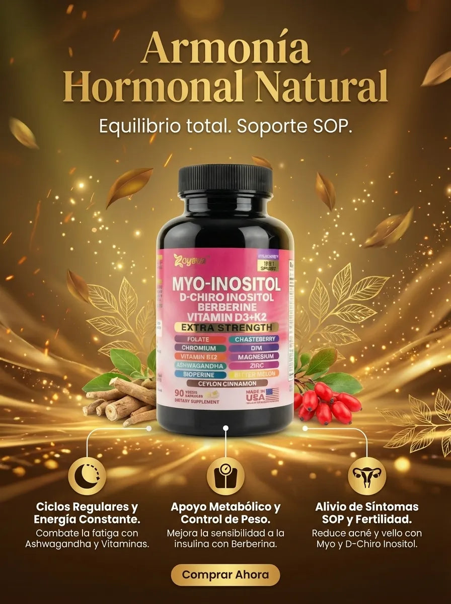 Esta fórmula avanzada reúne Myo-Inositol, D-Chiro Inositol, berberina, vitaminas y minerales clave en una sola cápsula diaria. Ideal para mujeres que buscan equilibrio hormonal, energía sostenida y bienestar integral.